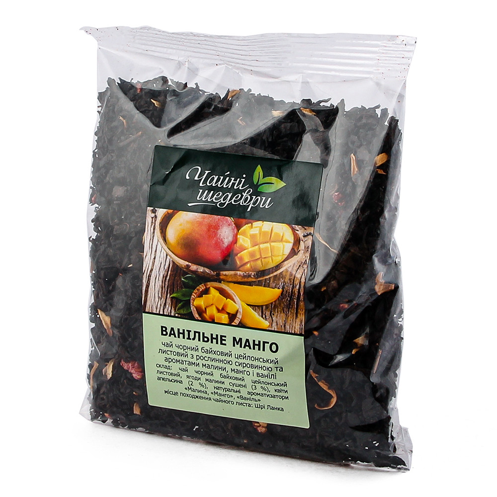 Чай "Ванільне манго" чорний байховий цейлонський листовий з ароматом ванілі, манго та малини.